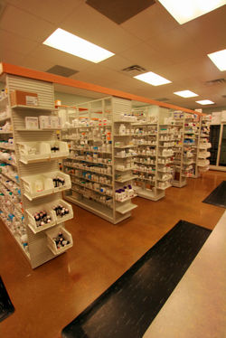 We were challenged to bring a more iconic and new style of pharmacy to the local market while keeping the architectural language of the adjoining property intact. Matching the buildings on the adjacent property, the continued use of brick and warm & inviting materials are used throughout the design both internal and exterior. The owner wished to incorporate a place where the community would want to come, even in times of wellness, and experience happy vibes rather than feelings of sickness. The addition of the state of the art frozen yogurt bar draws crowds from the local city and neighboring towns and inspires healthier choices for snacks, treats, and small celebrations. With a fun filled atmosphere and options of indoor and outdoor dining, the frozen yogurt bar, offering a variety of yogurt flavors and over 15 choices for toppings, is a popular after school and weekend hangout. It also offers a soothing treat for a sick child and helps make the time waiting on a prescription seemingly pass quickly. Aesthetically, low slung arches embellish the double height barrel vaulted ceiling leading to clearstories for natural lighting to flood the interiors. A featured water wall situated behind the drop off and pick up counters offers soothing sounds and a calming ambiance while customers wait for prescriptions to be filled. The modern pharmacy employs the use of robotic dispensing in addition to a full staff of pharmacists and technicians. Also, it incorporates a small compounding station, two drive-thru lanes, consulting and vaccination room, private office for pharmacists, and employee break room. The sophisticated gift shop offers a selection of gifts appropriate for all occasions and ages uniquely displayed and arranged to catch the public eye. Customer parking is offered in the front and side of the building with employee parking conveniently located behind the building by the employee and delivery entry.