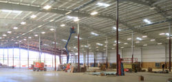 Alumaform specializes in innovative, custom-engineered overhead utility and communications solutions. They offer industry-leading fiberglass, aluminum, and apitong wood products for the electric utility and communications industries. Alumaform, Inc. commissioned the design-build of this 80,000 sqft industrial manufacturing facility to house their expanding aluminum products division. Although this facility is quite large, convenience and ease of circulation were guiding factor of the design. From the parking lot to work stations, much attention was given to how employees would interact with the new facility that would operate three shifts 24 hours per day. Site lighting, video surveillance, fencing, and a dedicated guard booth allow for appropriate site access and security. Project focus was centered on the 70,000 sqft of manufacturing space that included flex areas for a variety of work processes. Four 24’ wide automatic bay doors are used to supply the manufacturing floor with oversized raw materials being brought from the exterior material yard by fork trucks. 8 dock doors, including pit-levelers and shelters, are strategically located to accommodate the vibrant shipping and receiving hub. A convenient fork truck ramp is provided near the loading docks to allow for easy transition between the manufacturing floor and the exterior dock area. A dedicated research and development area is located near the manufacturing floor and has access to the exterior material yard. Just off the manufacturing floor, a 90-person breakroom equipped with a large kitchen, vending, and tables give employees ample space to relax with exterior views. An outdoor eating area is provided adjacent to the breakroom for those who wish for a bit of fresh air. Employee locker rooms, showers, and restrooms are located near the breakroom. This area doubles for a safe room (designed to FEMA standards) utilizing the concrete and steel reinforced walls and roof. Its intended use was to provide shelter for inclement weather or workplace violence. Engineering and supervisor offices are grouped in this portion of the facility as well. Located at the front of the facility and separate from employee and manufacturing areas is the administration wing. From the decorative main lobby to corporate conference room with custom furnishing, this is where all potential clients began their journey.